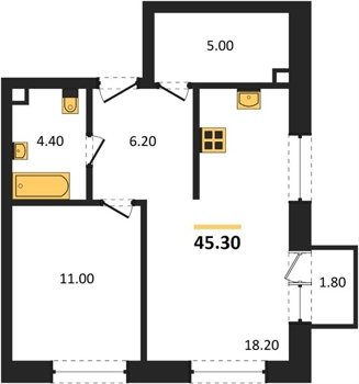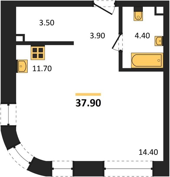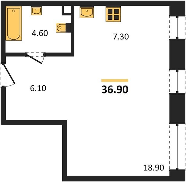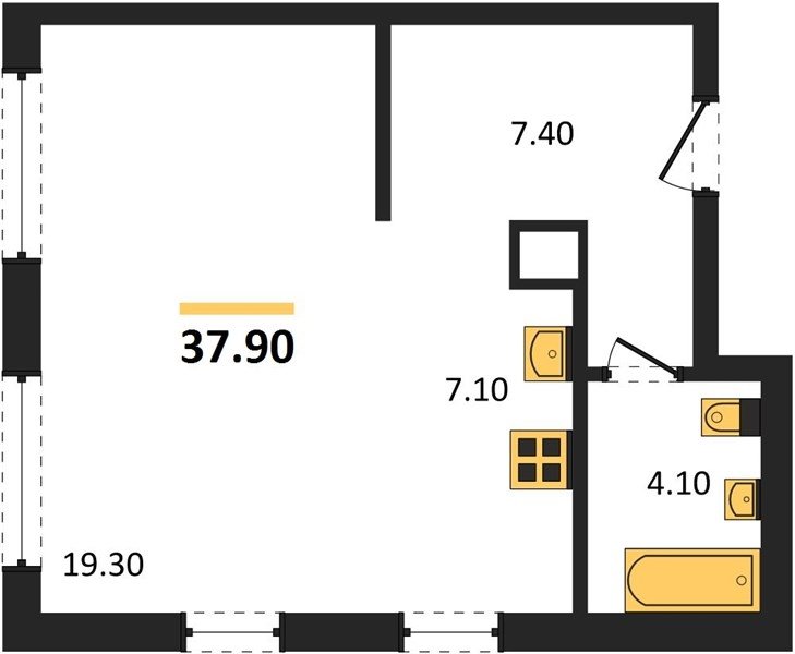 Площадь от 37.3 м2