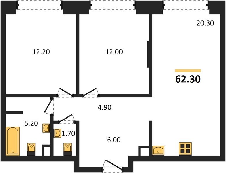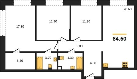 Площадь от 51.3 м2