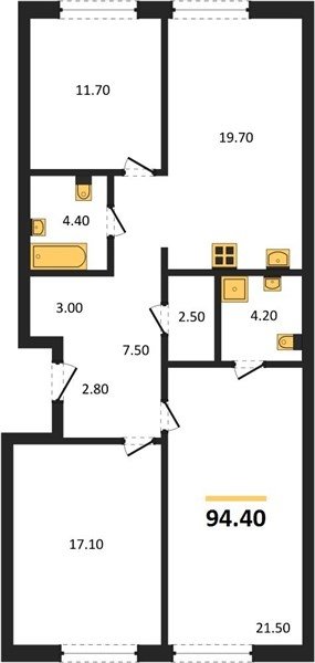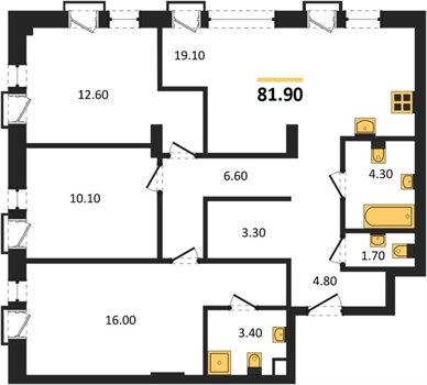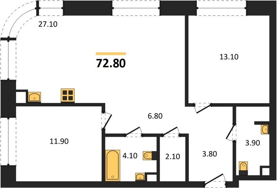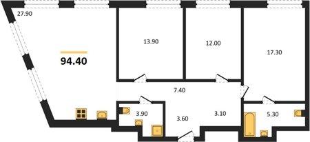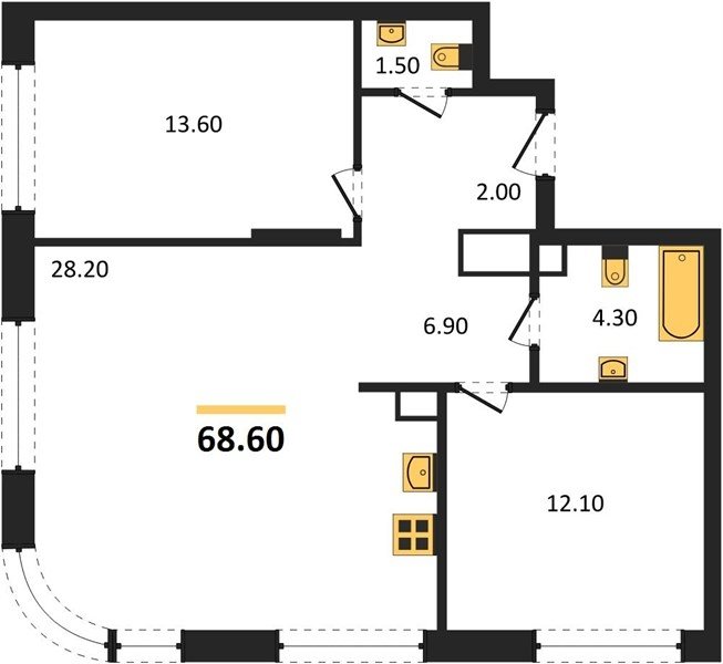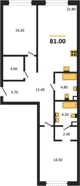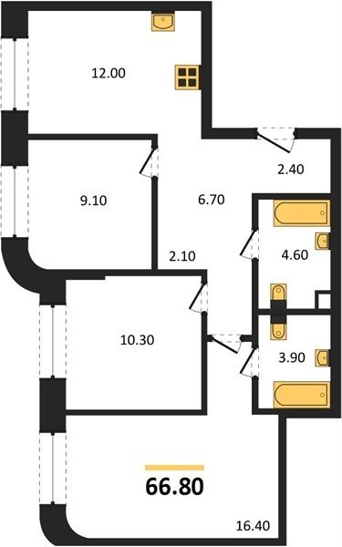 Площадь от 66.8 м2
