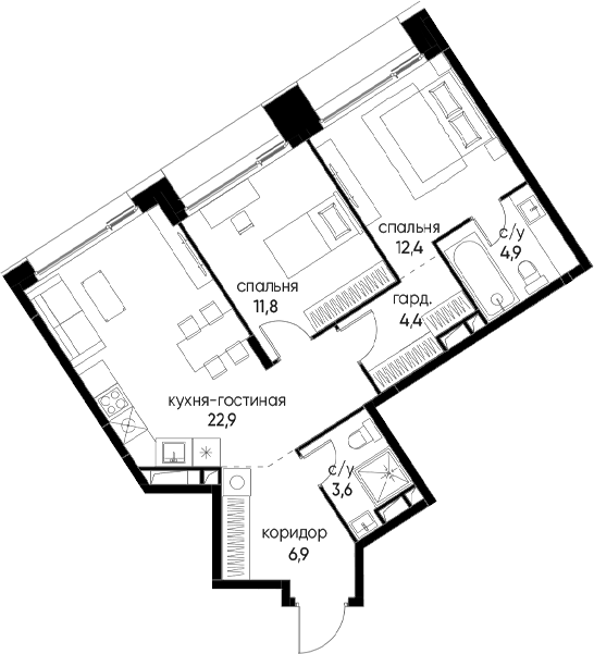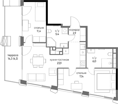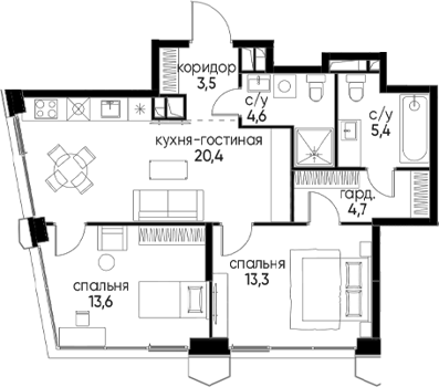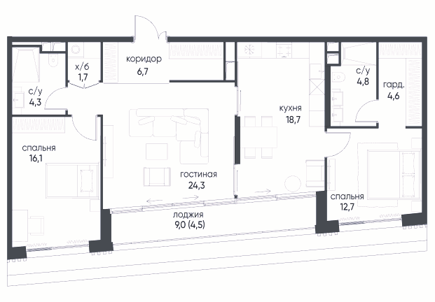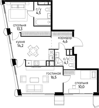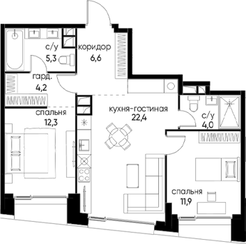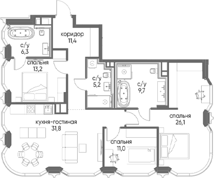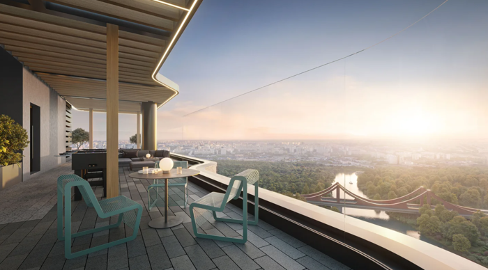 Вам доступны любые решения: от студий до просторных семейных квартир, резиденций и пентхаусов. Здесь можно найти уникальные форматы жилья, такие как квартиры с панорамными окнами, лоты с террасами, каминами, окнами в ванных комнатах и угловым остеклением. Некоторые квартиры сдаются с авторской отделкой и итальянскими кухнями.