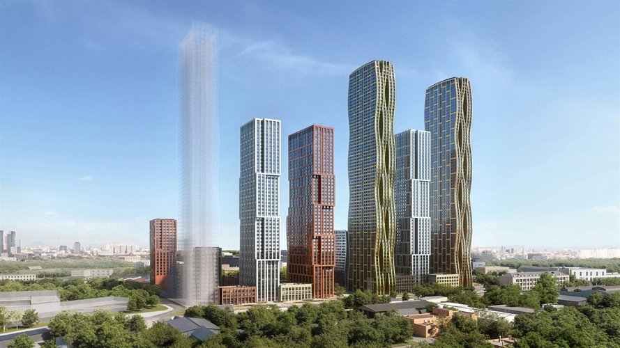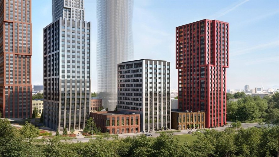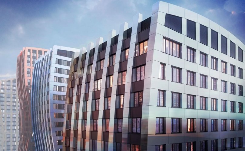 Бюро СПИЧ создало уникальный стиль проекта. В основе образа лежат мягкие, но энергичные водяные линии. Волнообразные башни гармонично сочетаются с корпусами, имеющими прямые и четкие формы.На высоких зданиях «волна» разделена на три части: вдоль фасадов словно струятся ленты, при этом динамика меняется в зависимости от угла зрения и освещенности.
