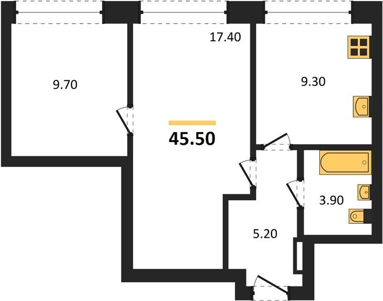 Площадь от 45.5 м2