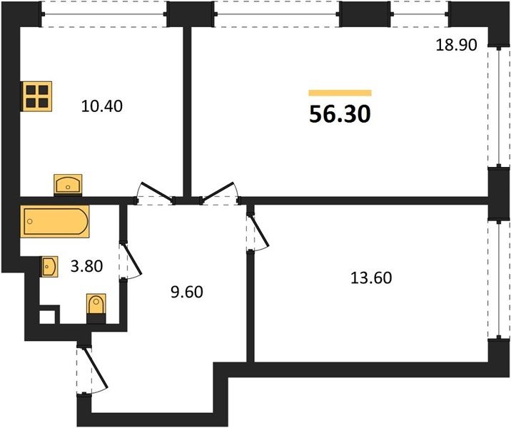 Площадь от 57.4 м2