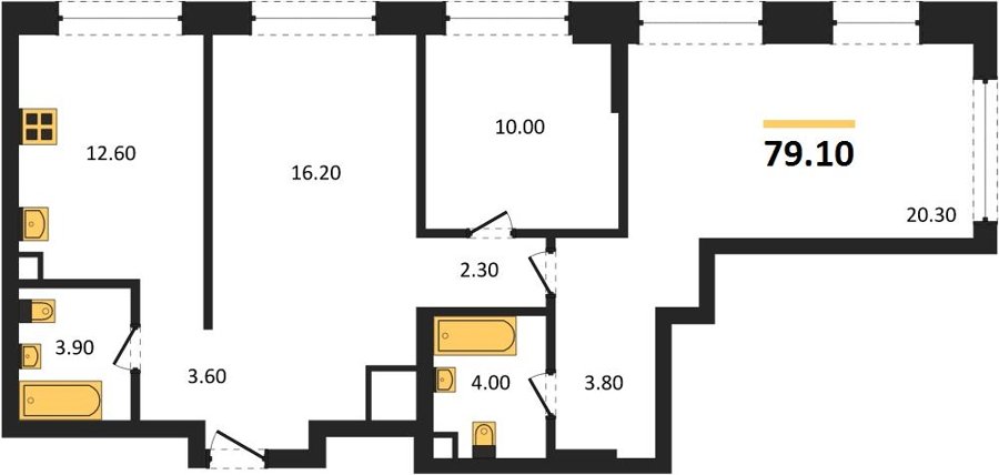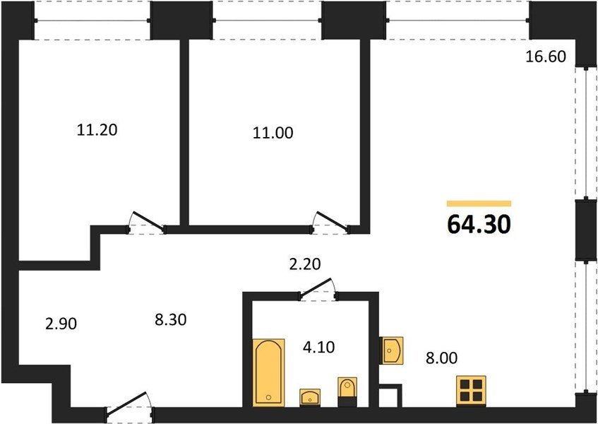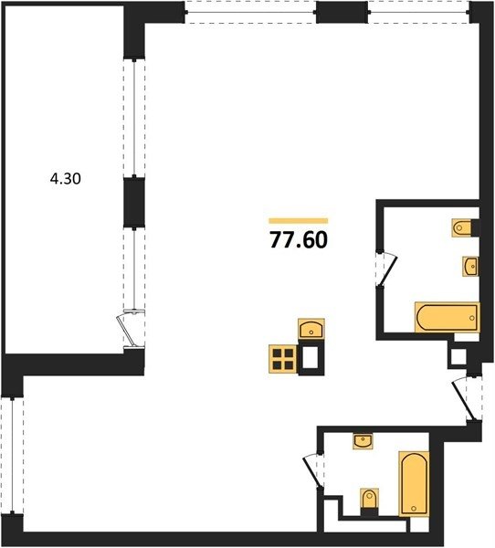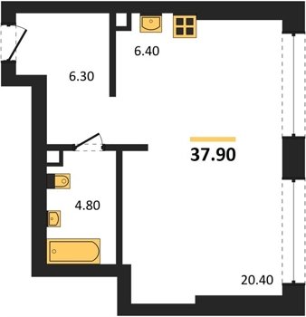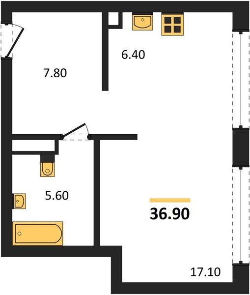 Площадь от 33.3 м2