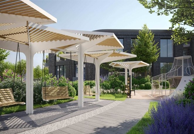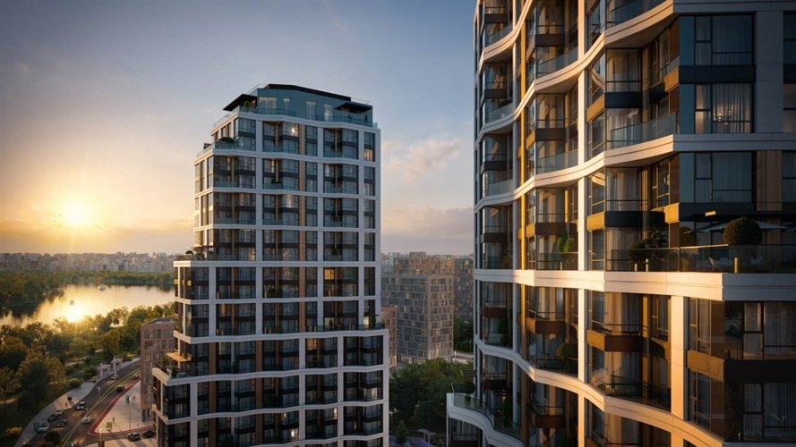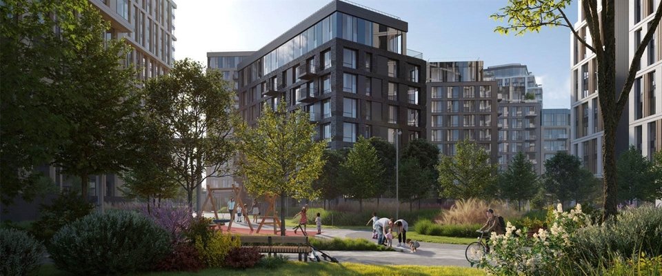 Здесь вас ждут двухуровневые пентхаусы и квартиры с террасами и патио. В квартале представлено более 120 планировок площадью от 40 до 192 квадратных метров. Многие квартиры имеют вид на реку. Проект включает ландшафтный дизайн, озеленение и вечернюю подсветку. На территории жилого комплекса предусмотрен центральный прогулочный бульвар.