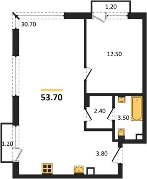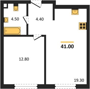 Площадь от 40.6 м2