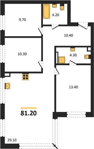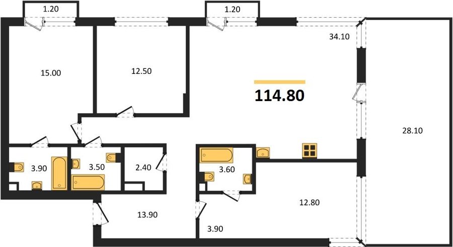 Площадь от 77.2 м2