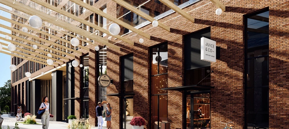 Павелецкая от Гранель органично вписывается в городской архитектурный ансамбль, играя на контрастах. Здания различаются по высоте, скатные крыши и крупные витражные окна формируют уникальный облик. Яркое сочетание теплого осеннего клинкера и холодного блеска стекла, декоративные элементы под дерево и металлические панели создают запоминающийся фасад.