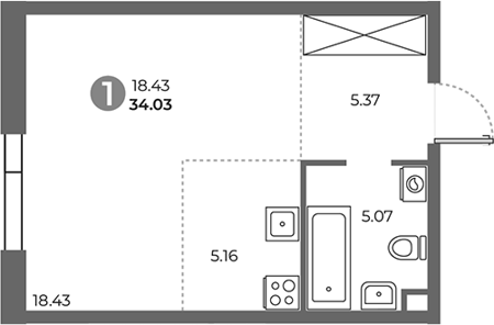 Площадь от 41.52 м2