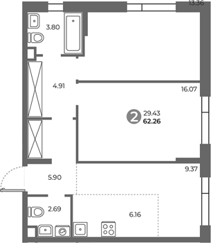 Площадь от 62.26 м2