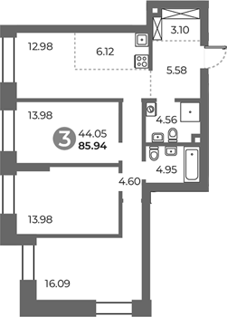 Площадь от 85.91 м2