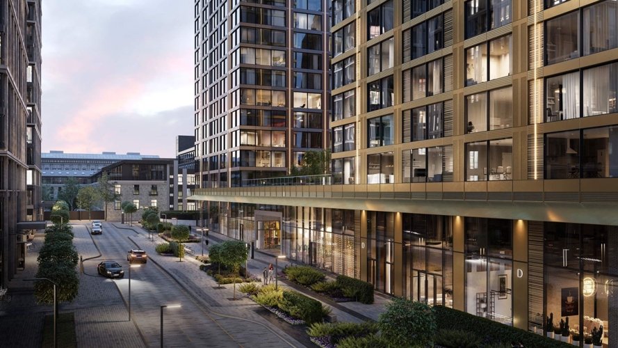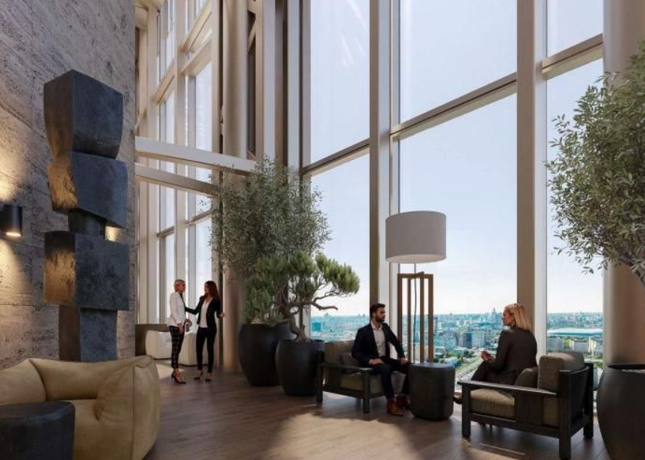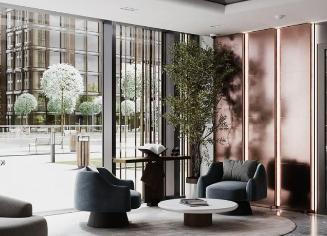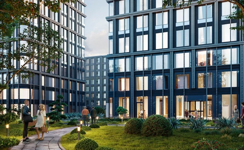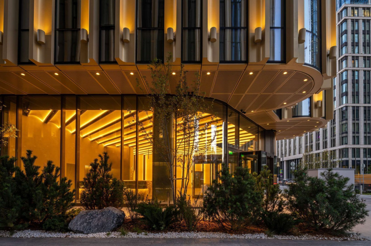 Внутреннее пространство продумано до мелочей. Проект включает всё, что нужно для комфортной жизни в Москве. Большинство заведений расположены на первых этажах зданий. Жители могут легко попасть сюда, спустившись на лифте. Вход в лобби находится на уровне земли. Здесь есть лаунж-зоны, круглосуточный консьерж-сервис, площадки для мероприятий (фуршеты, вечеринки), библиотека и приватный кинотеатр.