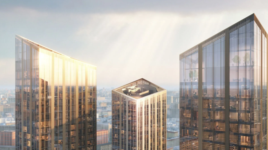 Силуэт четырех башен, возвышающихся на 140 метров, излучает оптимизм и устремленность в будущее. Каждая башня имеет уникальный фасад и цветовую гамму. Проект создал знаменитый архитектор Хельмут Ян, основатель чикагского бюро Jahn. Его работы получили множество наград и воплощены в крупнейших городах мира.