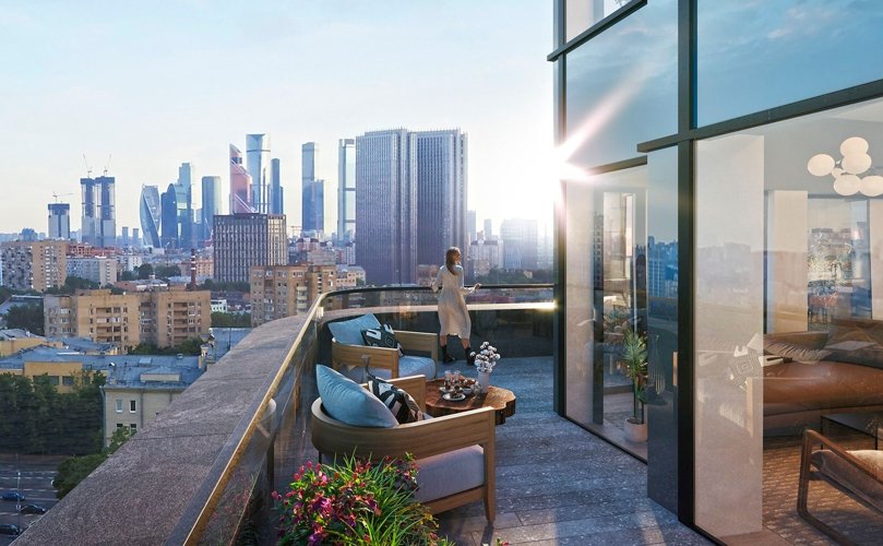 Панорамные окна открывают перед жильцами захватывающий вид на Москву. Вы увидите крыши домов вдоль Тверской улицы, Садовое кольцо, башни Кремля и величественные купола храма Христа Спасителя. На западе города возвышается Москва-Сити, а к юго-востоку виднеется высотка на Котельнической набережной. Над Воробьёвыми горами выделяется шпиль Московского университета. Этот вид прекрасен не только днём, но и ночью!