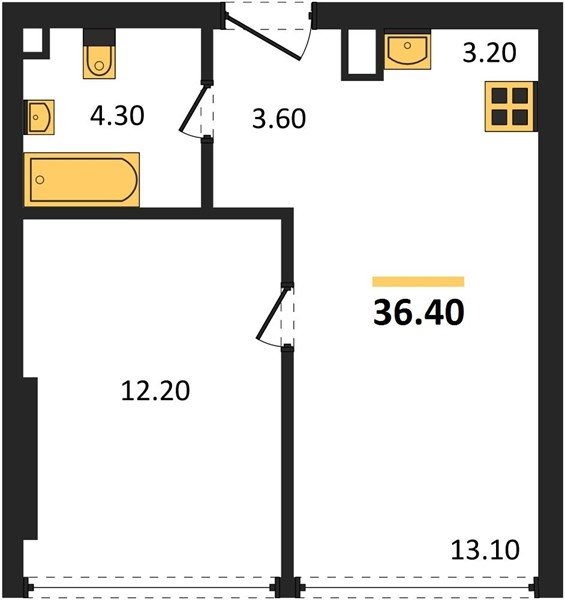 Площадь от 36.4 м2