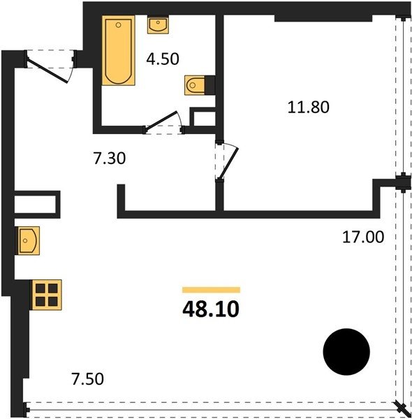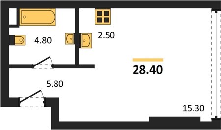 Площадь от 28.1 м2