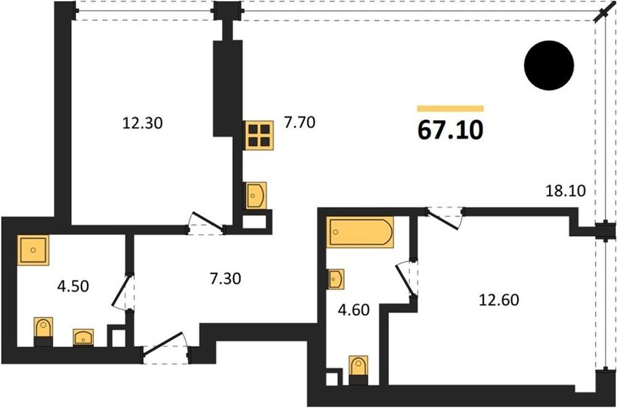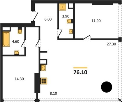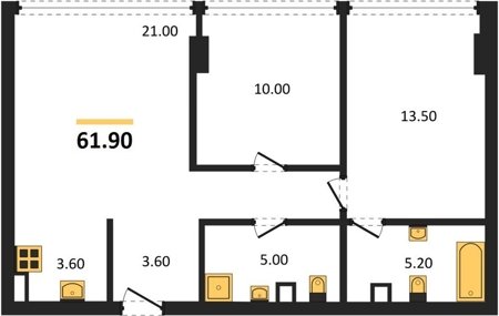 Площадь от 60.8 м2