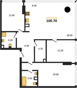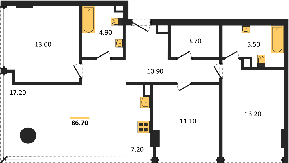 Площадь от 86.7 м2