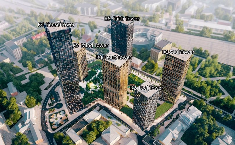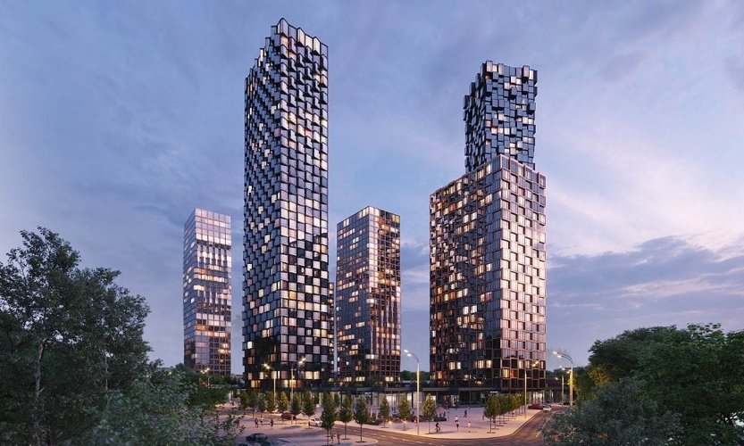 Комплекс из шести ультрасовременных башен с выразительными фасадами и высотой до 47 этажей станет символом архитектурного прогресса. Панорамные окна создадут уникальный ансамбль, который станет достопримечательностью района и изменит его облик.